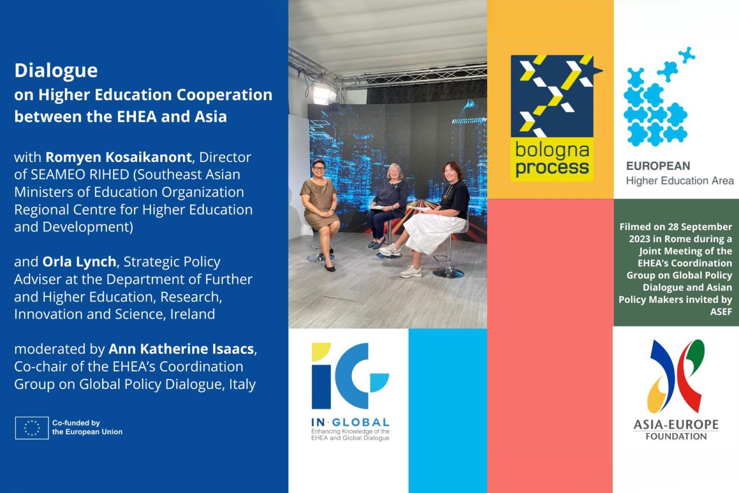 This interview was filmed on 28 September 2023 in Rome during the Joint Meeting of the EHEA’s Coordination Group on Global Policy Dialogue and Asian Policy Makers invited by the Asia-Europe Foundation (ASEF), with the support of the IN-GLOBAL project.